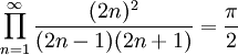 John Wallis(1616/11/23-1703/10/28) の Arithmetica Infinitorum (1656)に出てくる、いわゆるウォリス積