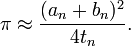 わずか3回のループで小数点以下14桁をクリア。実はこの時点で小数点以下18桁までクリアしている。このアルゴリズム、pn が曲者で、1024ループあたりで変数がオーバーフローしてしまう。浮動小数点で計算するのはこの辺が限度ということだ。
