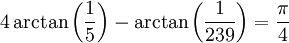 arctan をTaylor展開する。9回回して小数点以下14桁をクリア。